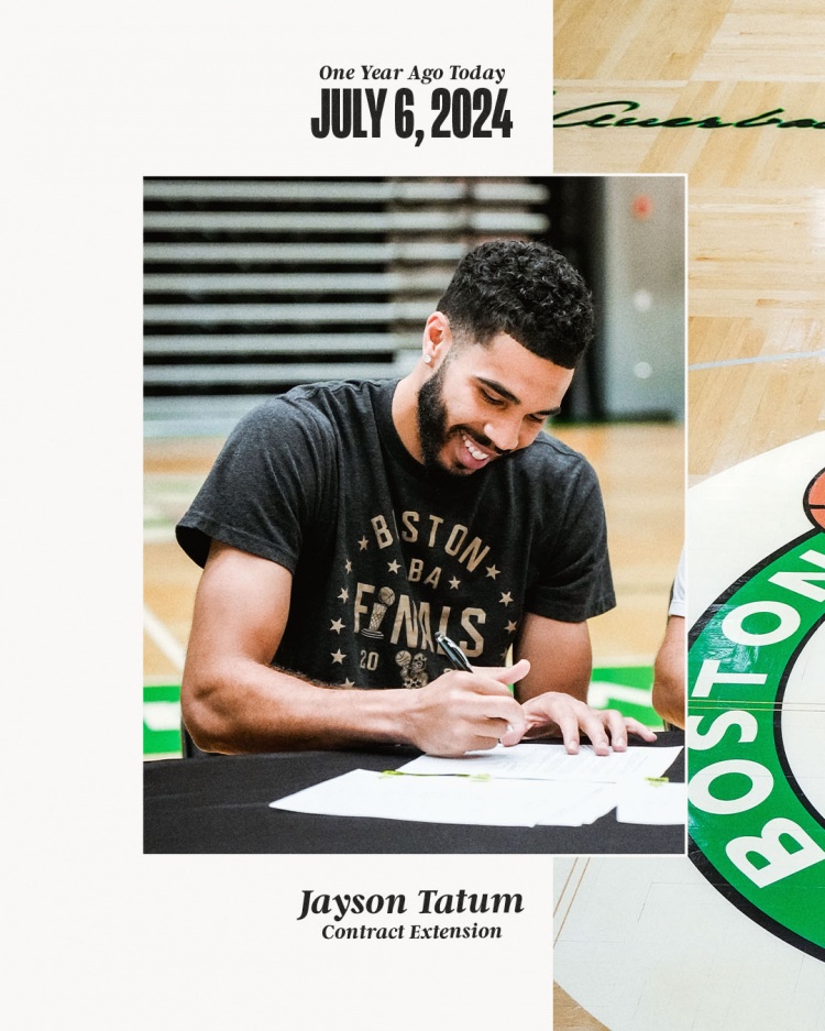 续约一周年!凯尔特人晒去年今日塔图姆签约照